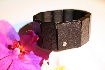 Naturschiefer-Armband versehen mit einem weißen Zirconia in 14 ct. Gelbgoldfassung.