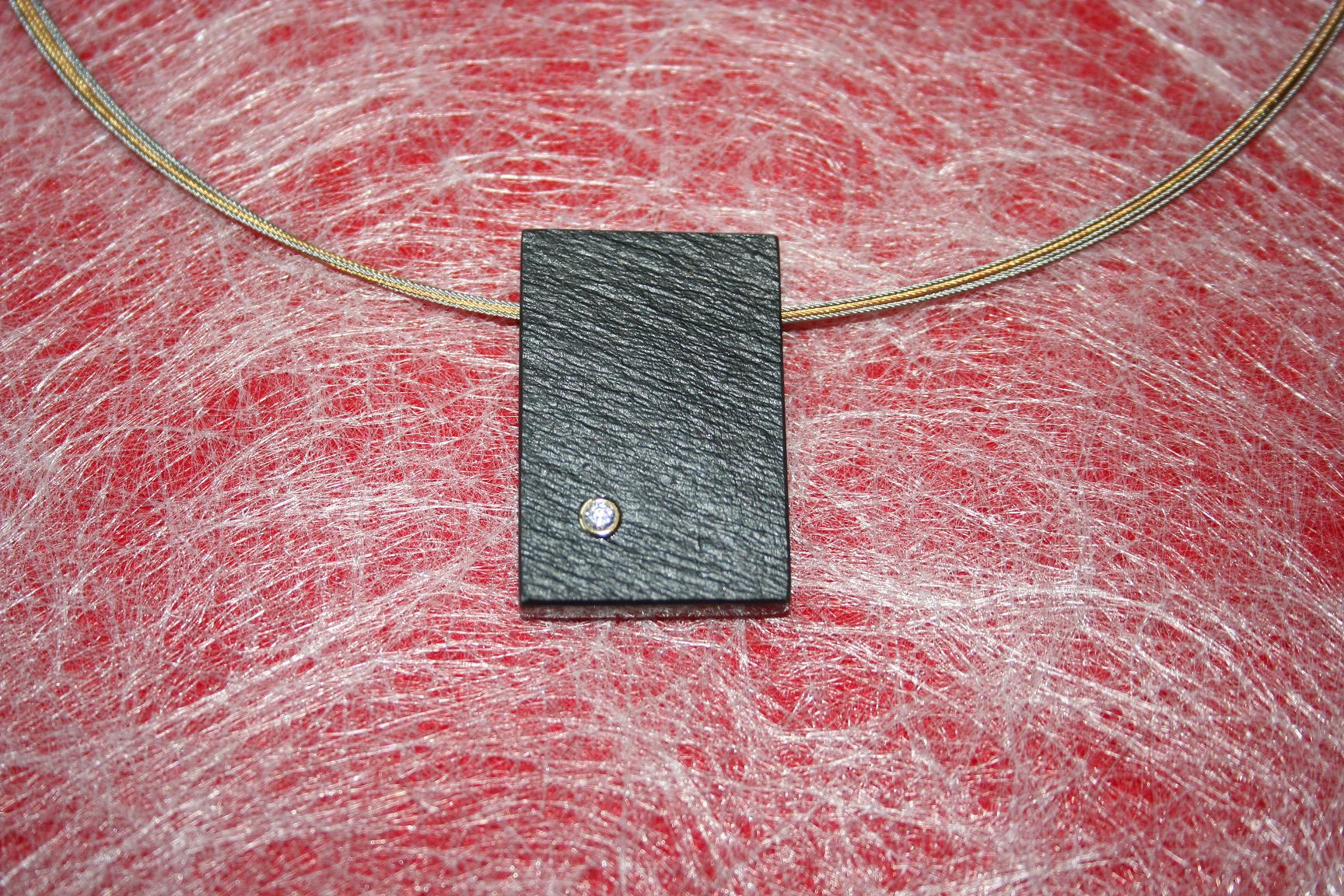 Naturschiefer-Collier (38 x 25 mm) versehen mit einem weißen Zirconia in 14 ct. Gelbgoldfassung an einem fünf-reihigem