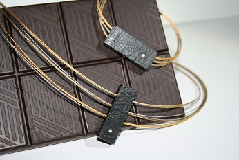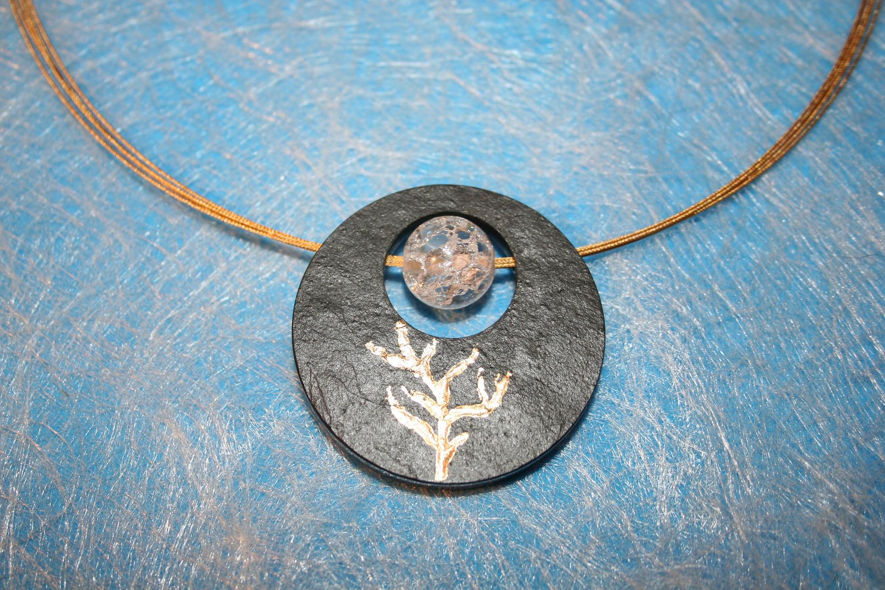 Naturschiefer-Collier versehen mit Blattgoldmuster an einem fünf-reihigen, vergoldeten Edelstahlreif mit